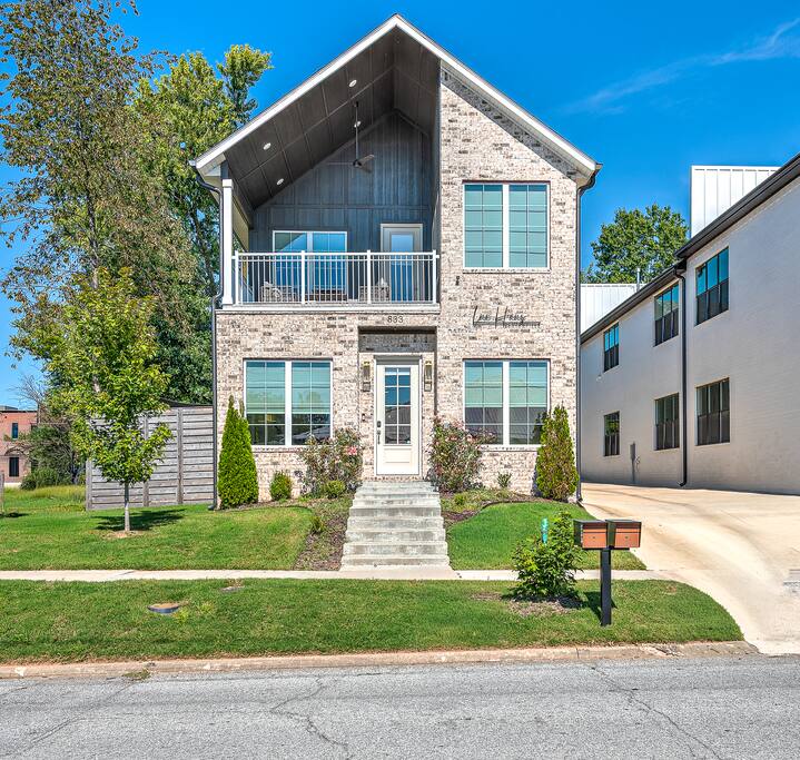 Enjoy the beauty that Northwest Arkansas has to offer when you stay with us. Inside you will find 4 large bedrooms, 3 full bathrooms, 2 half bathrooms, 2 living areas with fireplaces, a fully stocked chef's kitchen and butler's pantry and a wet bar with a beverage refrigerator. Bask in the morning sunlight over a cup of java from the pantry coffee pot or upstairs Keurig. If espresso wakes you up, then we have an extra steamy Mcilpoog machine hot and ready. Get inspired by the local cuisine to become a chef in the extra large kitchen. We have everything you need to make a fabulous meal or air fry some late snacks. The lavish upstairs primary retreat has a large soaking tub for after a long day of exploring, a large TV for winding down with your favorite shows, a plush king bed and a pillow menu for a good night sleep. Every bedroom has satin pillow cases, phone chargers and televisions so you feel right at home. You will have plenty of space in the walk in closets where you will find additional blankets, pillows, and hangers, plus we have a pack n play for little children and an iron, ironing board and steamer to stay well dressed. !!!Besides the 4 beds and pullout sleeper sofa, to accommodate 12-14 people, we have a sofa futon for an adult or 2 small children in one of the bedrooms and a queen air mattress for 1 or 2 adults or children!!! Our full bathrooms provide shampoo, conditioner and body wash with lush towels to wrap up in. The living spaces also have TVs for movie nights. In the upstairs living area you can enjoy a fun card or board game in our cabinets. Chill a bottle of wine or mix up a drink at the wet bar stocked with white, red, martini and cocktail glasses. Light the fireplaces in either entertaining space to set the mood or keep your toes warm. Step outside to second floor open air balcony to take in the views of the Arts and Market District or turn on the propane fire-pit while listening to live music on certain nights from The Momentary Live On The Green. The glowing lights of the surrounding neighborhood are our favorite a nighttime. Our side patio off of the first floor living and kitchen space provides a cozy spot for evening cocktails or grilling fresh fish purchased from Blu Fish House down the street. Parking is a breeze in our 2 car garage or outdoor private parking space for 2 additional vehicles. Take advantage of our free bicycle rack in the garage as you are in the Mountain Biking Capital of the World and right across the street from the Town Branch trail system. Free maps and Arkansas information can be found down the street at the Bentonville Welcome Center. Walk there and check it out. You won't miss anything with our FREE Wifi onsite. For additional security, exterior cameras, digital door bell and motion detectors are on property, so you can feel at ease in our fabulous Northwest Arkansas community. Coming with a large group or team for an event? Our property next door can accommodate the same number of people - you share the driveway! Ask us about renting both. Light and Luxury abound...Welcome to the Lux Haus.