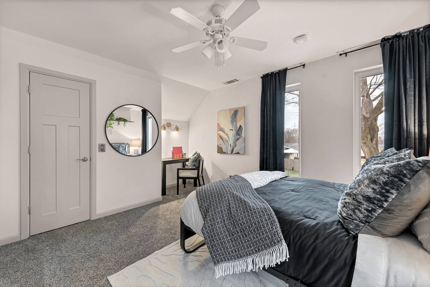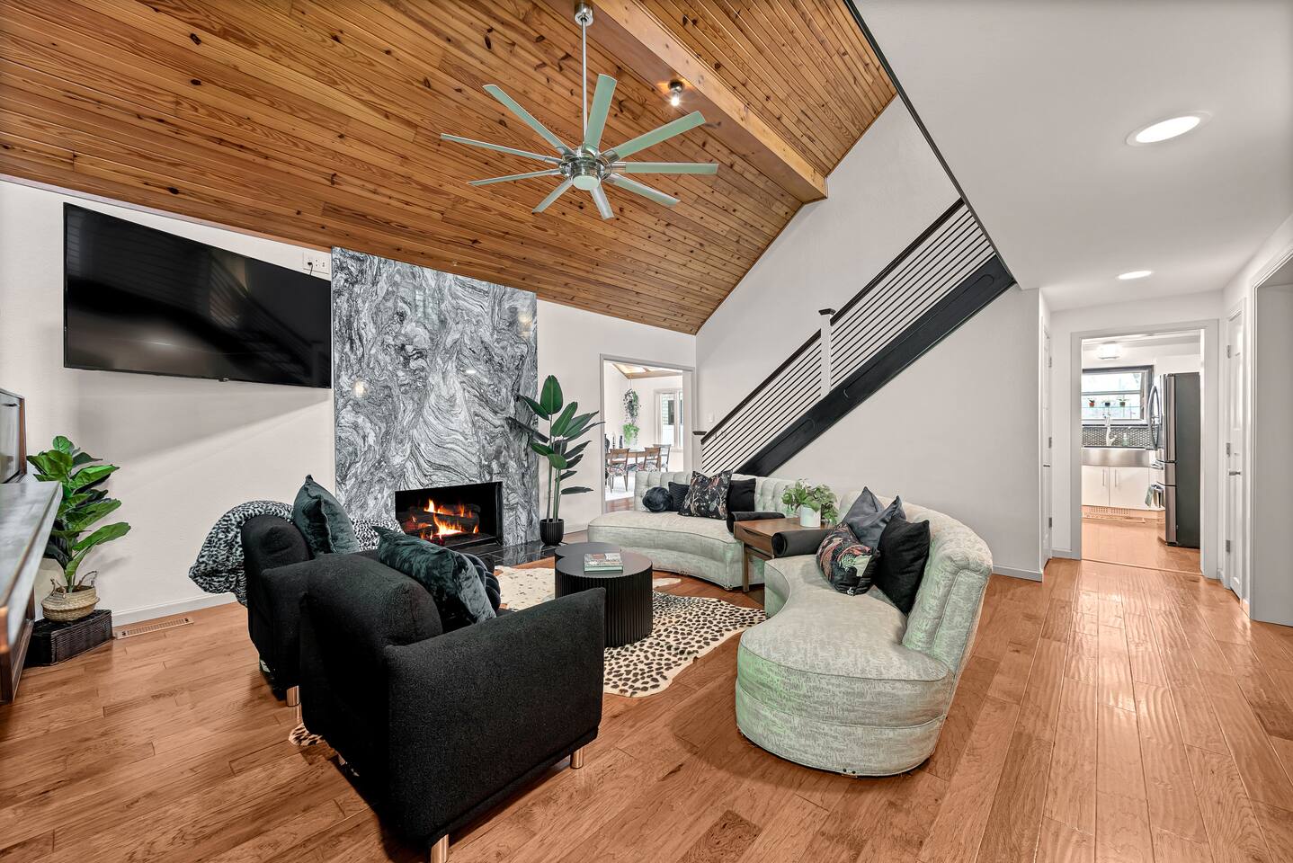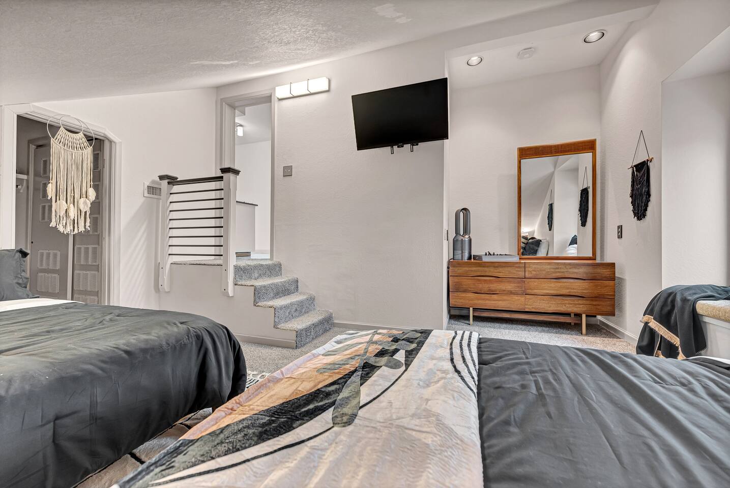 We are so excited to welcome you to the Blue Jungalow Bentonville. Centrally located a few blocks away from Downtown Bentonville, a vibrant business district offering an array of specialty shops, brewpubs, and laid-back eateries among its public art-filled, tree-lined streets. It’s home to Walmart’s world headquarters and the Walmart Museum, as well as the modern Crystal Bridges Museum of American Art, the neighboring Frank Lloyd Wright’s Bachman-Wilson House, and the Scott Family Amazeum Children’s Museum. Ready to enjoy the Mountain Biking Capital of the World? An array of biking and hiking trails are steps away from the Jungalow. Grab a cup of java at Airship Coffee at the Pumphouse located on the Zeppelin Trail before heading out for the day just 1/2 mile loop from the front door. There's so much to see and do at the Jungalow. Blue Jungalow Bentonville is a 3,110 sqft, two level home with a large dining and sun room for entertaining, cozy living space with fireplace, two primary en suite bedrooms and a large fenced in outdoor space with a 2 separate fire pits, Grill and BBQ to enjoy. Our property boasts 5 spacious bedrooms, 3 bathrooms, 1 half bath, a hidden bunk room and more! To accommodate 16+ people, we have additional queen air mattresses for 1 or 2 people each!!! More details: - 0.7 mile bike ride to Airship Coffee at the Pumphouse on ZeppelinTrail Head and Biking/Hiking Trails at Park Springs Park - 2 miles from the New Walmart Headquarters - 0.8 mile from the Downtown Bentonville Square - Mountain biker-friendly: All of the Bentonville trails are easily accessible from the house - Sleeps 16: 2 King Beds, 2 Queen Beds, 2 Full beds in the Bunk Room, 2 sleeper futon sofas & 2 queen air matresses - Fully stocked bathrooms and bedrooms - Private fenced in backyard patio with propane and BBQ grill, wood burning and propane fire pit, & al fresco dining space - 2 car garage with bike racks for parking - Fully equipped laundry room - Dedicated workspace for executive stays Coming with a large group or team for an event? We have multiple properties located Downtown Bentonville that can accommodate 10+ people each! Ask us for more information. We cannot wait to host you!