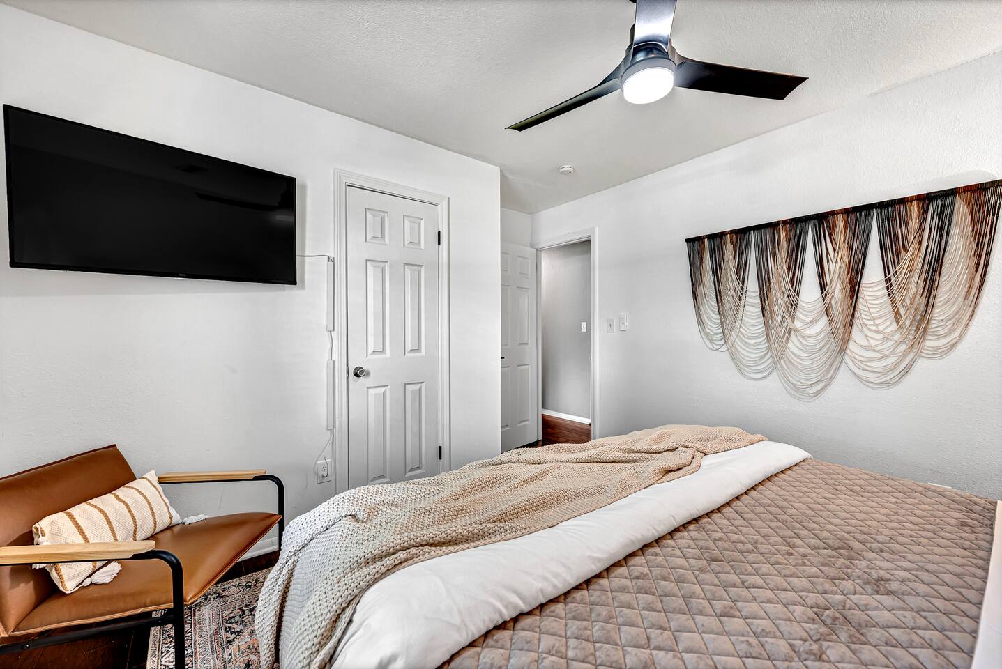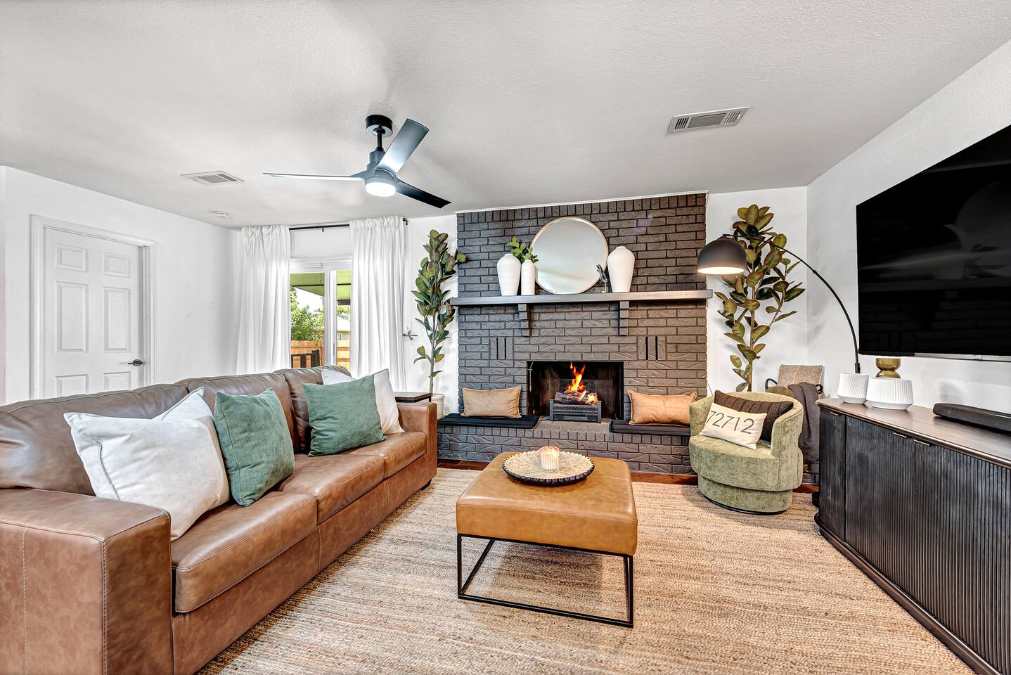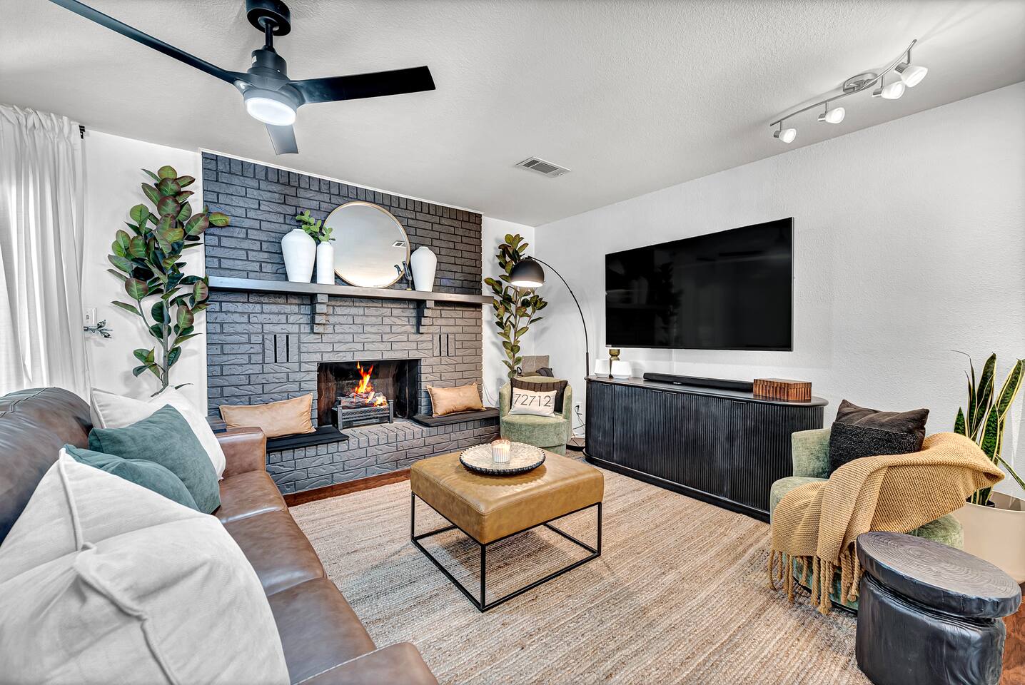 Welcome to your Bentonville home away from home — a stylish boho-inspired ranch just minutes from world-class biking trails and the heart of Downtown. This spacious 3-bedroom, 2-bath home comfortably sleeps up to 8 guests with a cozy pull-out sofa in the living room. Design in Progress! Thoughtfully designed with neutral tones, earthy textures, and laid-back charm, the space is perfect for relaxing after a day of exploring Northwest Arkansas. Inside you'll find: ✦ 3 serene king bedrooms with plush bedding ✦ 2 full bathrooms stocked with essentials ✦ Open-concept living & dining area with smart TV ✦ Fully equipped kitchen for home-cooked meals ✦ Washer & dryer for your convenience Outside, unwind in style: ✦ Private hot tub under the stars ✦ Large fire pit with ample seating — perfect for evening hangs ✦ Fully fenced backyard for privacy & pups (pet-friendly!) Our home is designed to reflect that balance — a place to rise with adventure and return to calm. Whether you're chasing the trails by day or soaking under the stars at night, Casa Soluna invites you to find your rhythm, your stillness, and your joy. Ride. Relax. Repeat.