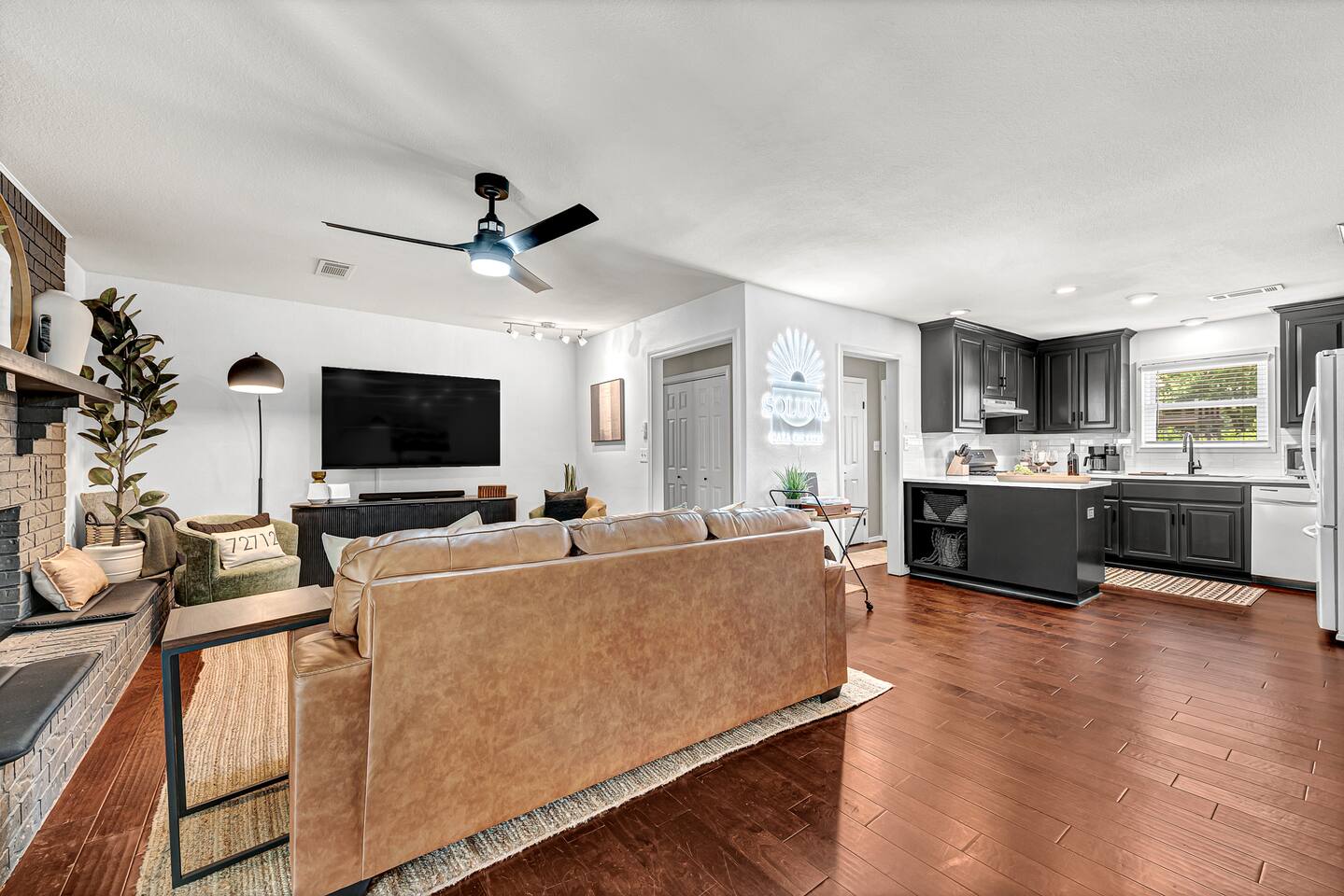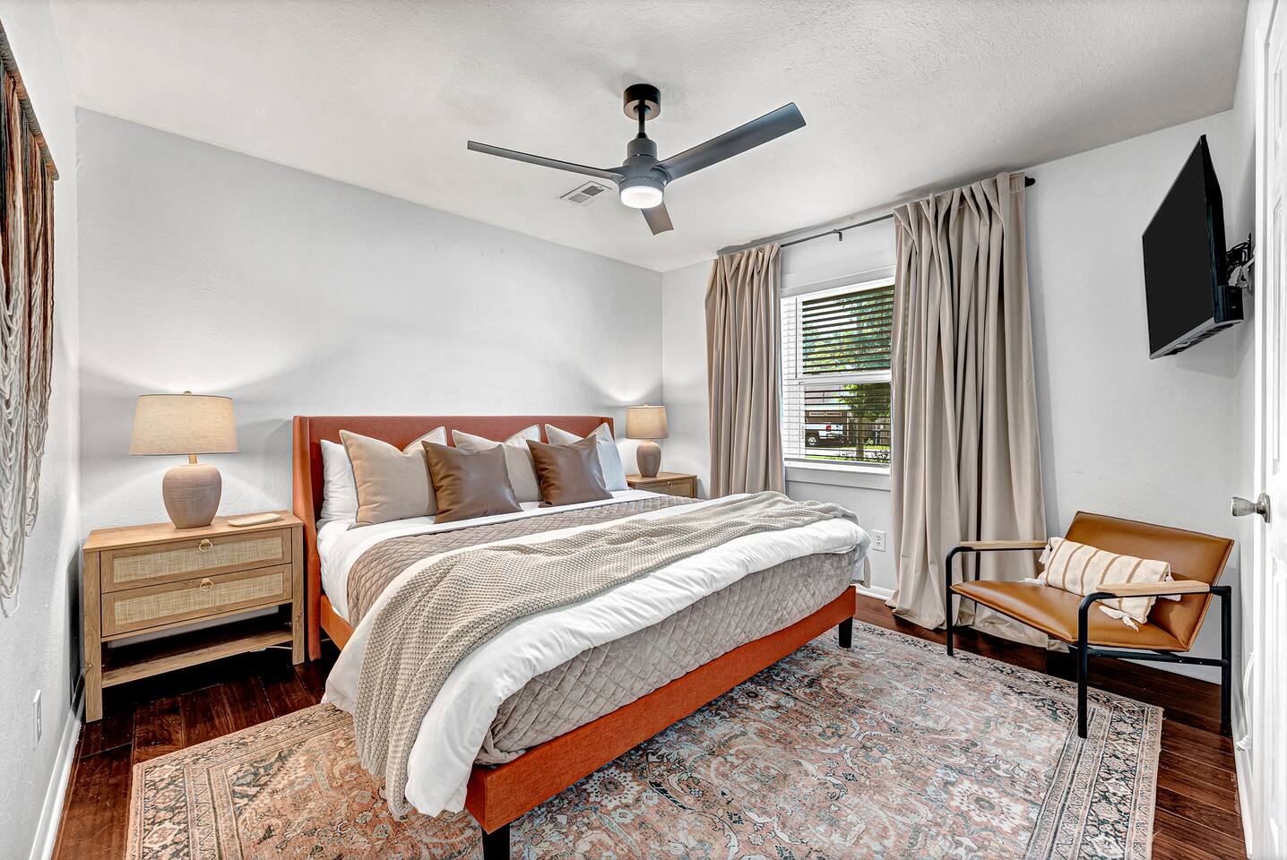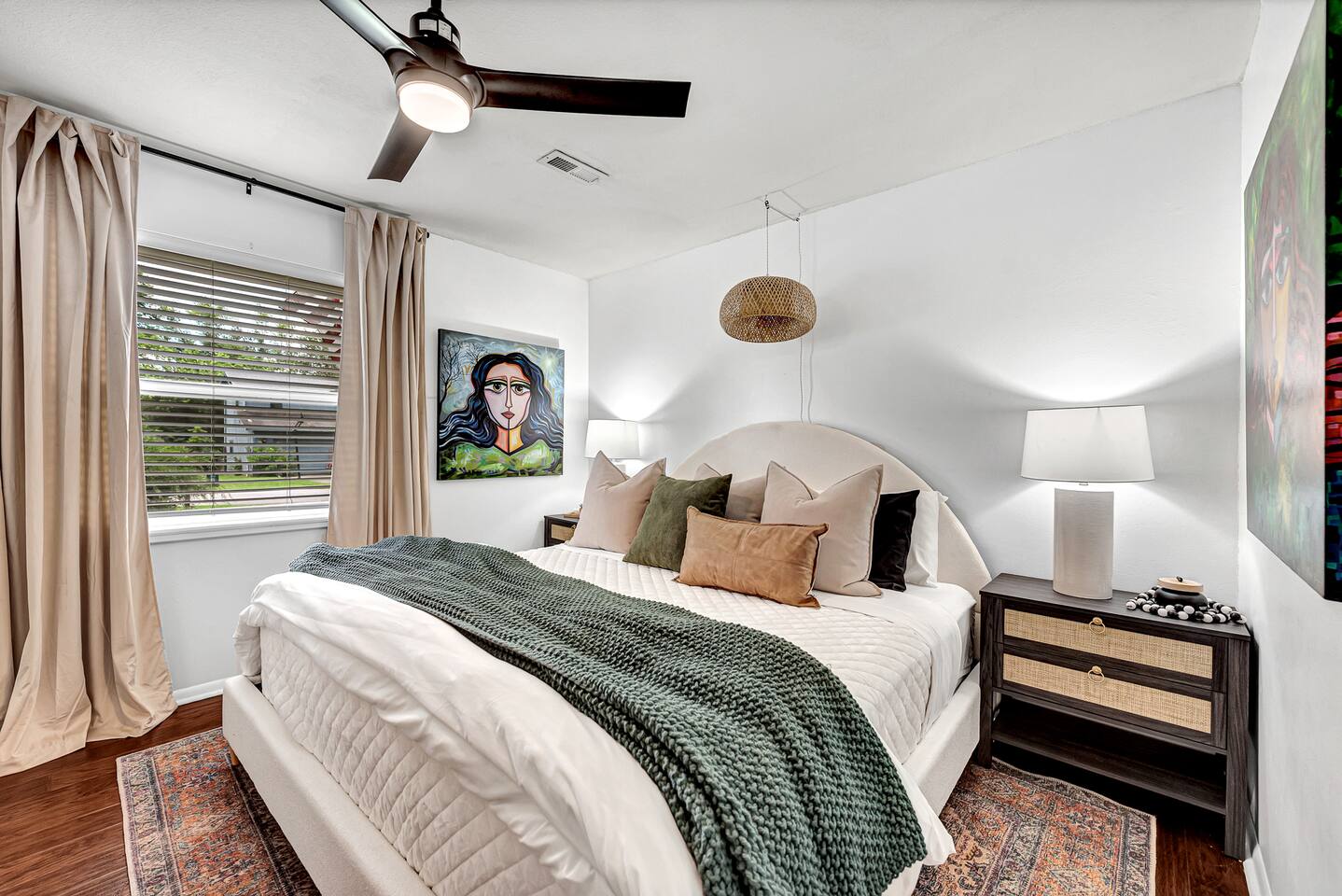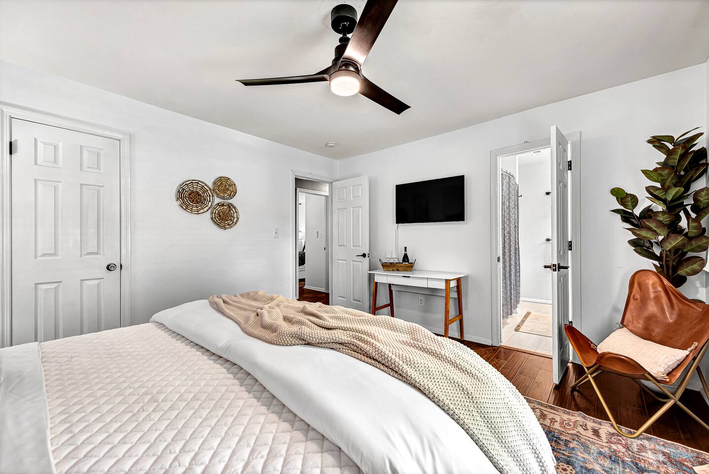 Welcome to your Bentonville home away from home — a stylish boho-inspired ranch just minutes from world-class biking trails and the heart of Downtown. This spacious 3-bedroom, 2-bath home comfortably sleeps up to 8 guests with a cozy pull-out sofa in the living room. Design in Progress! Thoughtfully designed with neutral tones, earthy textures, and laid-back charm, the space is perfect for relaxing after a day of exploring Northwest Arkansas. Inside you'll find: ✦ 3 serene king bedrooms with plush bedding ✦ 2 full bathrooms stocked with essentials ✦ Open-concept living & dining area with smart TV ✦ Fully equipped kitchen for home-cooked meals ✦ Washer & dryer for your convenience Outside, unwind in style: ✦ Private hot tub under the stars ✦ Large fire pit with ample seating — perfect for evening hangs ✦ Fully fenced backyard for privacy & pups (pet-friendly!) Our home is designed to reflect that balance — a place to rise with adventure and return to calm. Whether you're chasing the trails by day or soaking under the stars at night, Casa Soluna invites you to find your rhythm, your stillness, and your joy. Ride. Relax. Repeat.