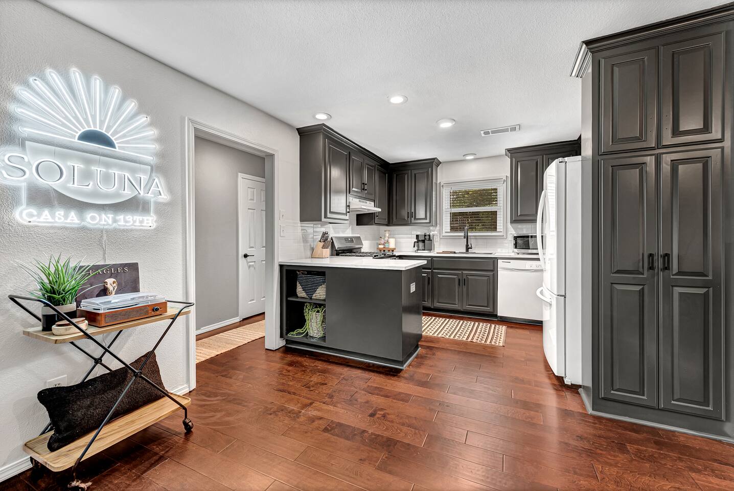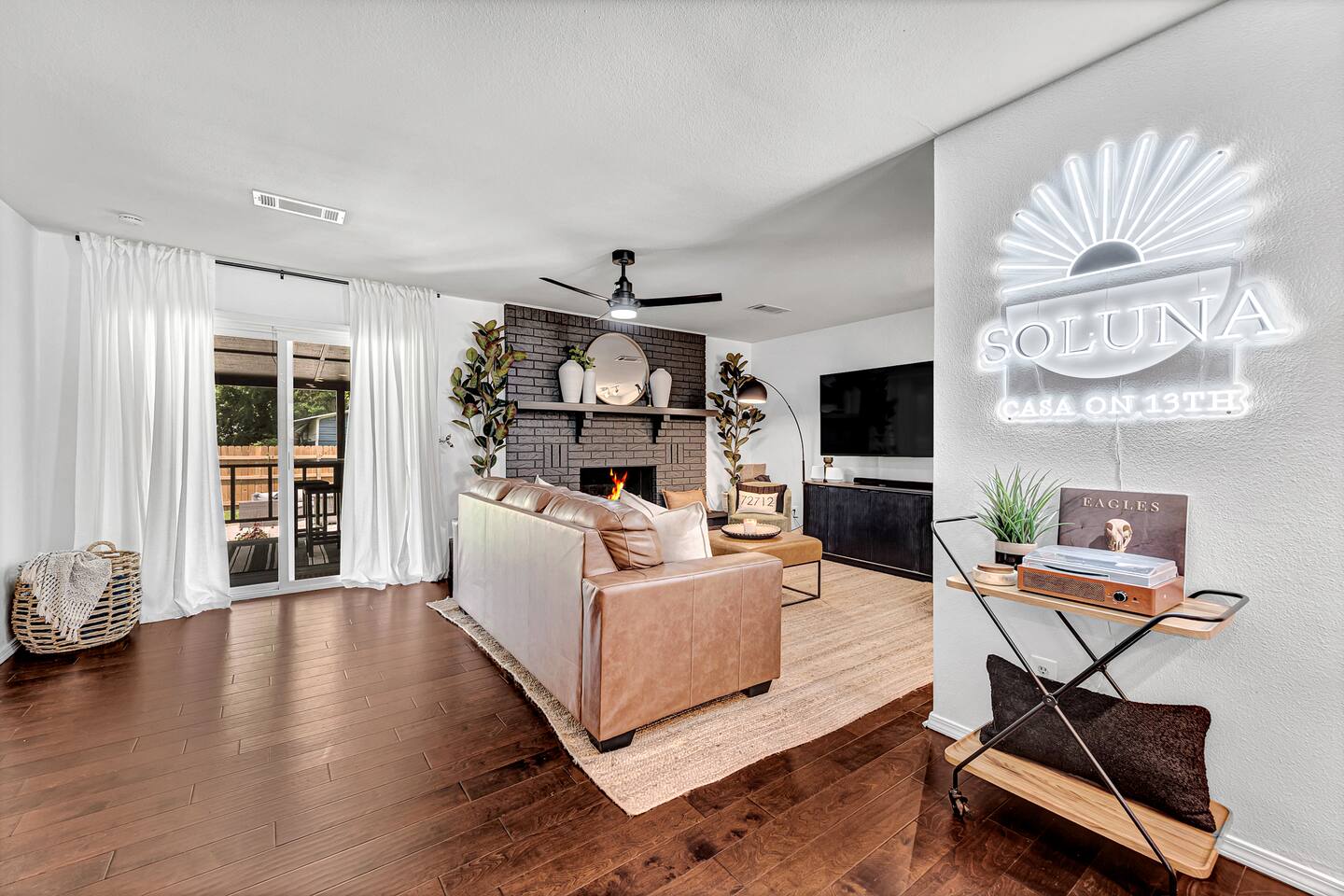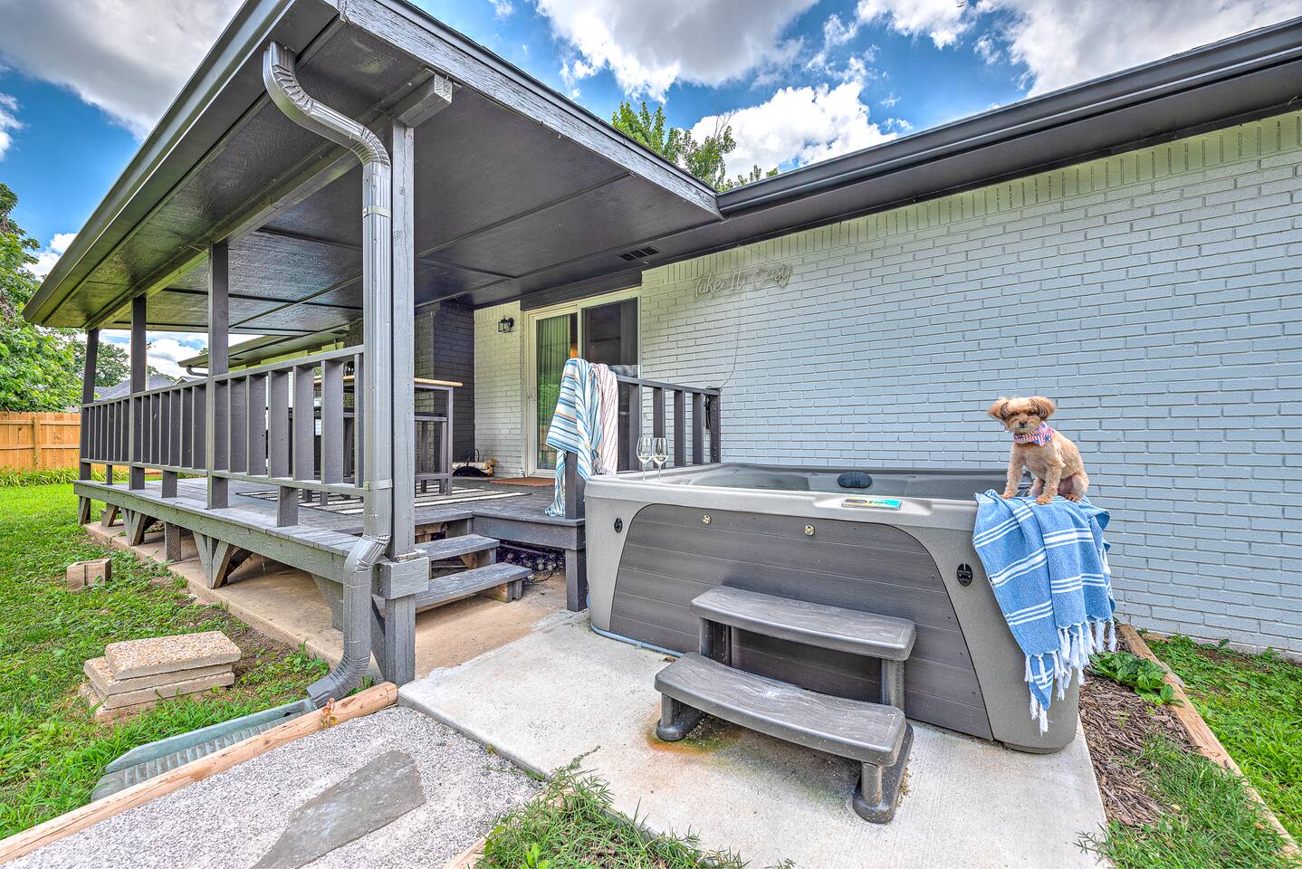 Casa Soluna on 13th | Boho Bike Retreat Near Trails + Downtown Relax in style at Casa Soluna — a serene 3 bedroom, 2 bathroom boho ranch just a short ride from Bentonville’s top biking trails and vibrant downtown. After a long day of exploring Northwest Arkansas, set your gear in our secure garage, then unwind in our tranquil backyard featuring a covered deck, hot tub and fire pit. The perfect blend of comfort, style, and adventure-ready convenience. Rise with rhythm and return to calm.